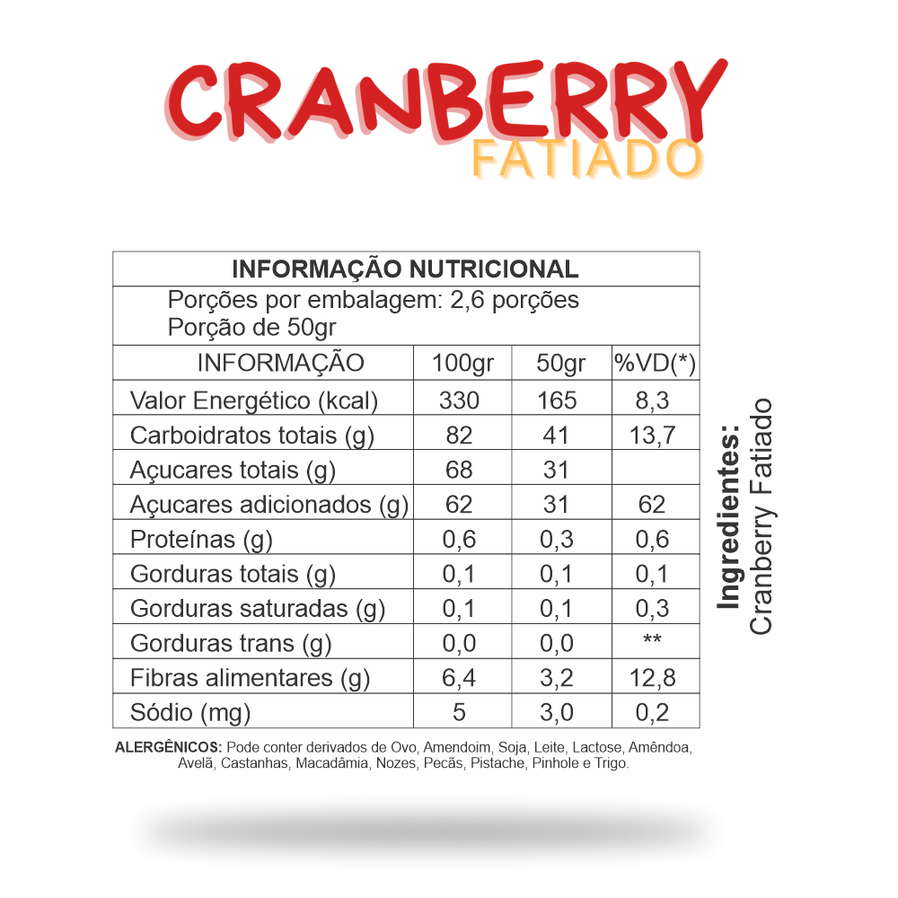 Cranberry desidratado, Açucar e Óleo de Girassol